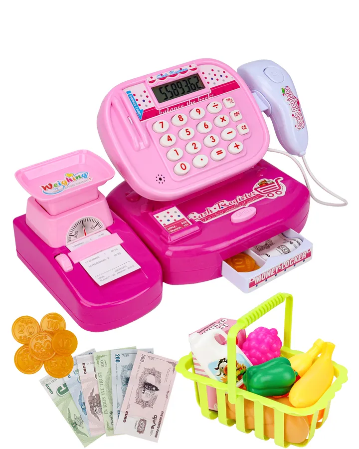 Игровой набор Рыжий кот касса, прилавок, продукты, тележки и корзинки