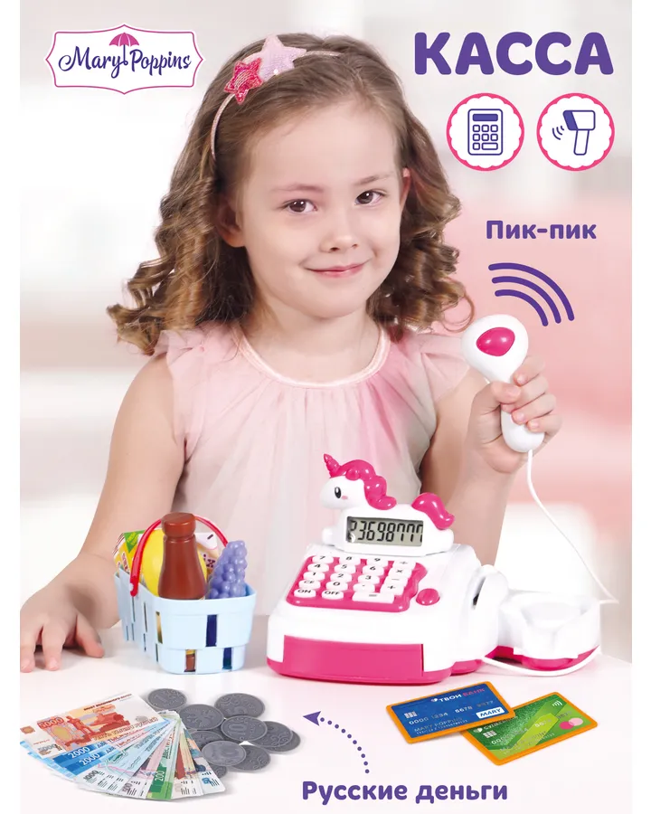 Игровой набор Mary Poppins касса, прилавокРебенку очень понравилось, главный критерий был, чтобы игрушка пикала, когда пробиваешь товар, так что все отлично