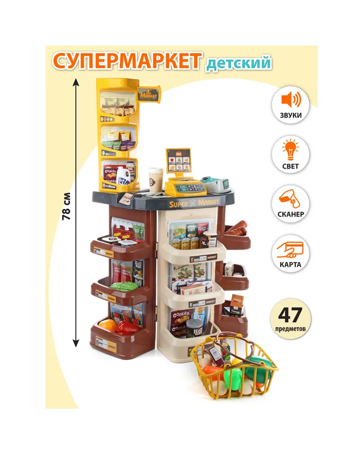 Игровой набор Рыжий кот касса, прилавок, продукты