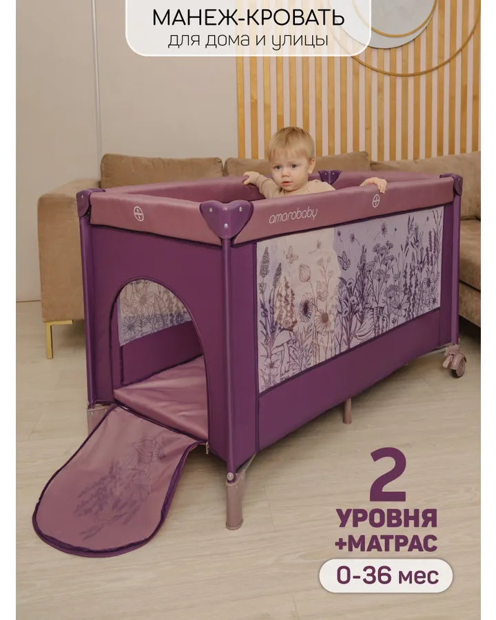 Манеж кровать Amarobaby Multiform Flowers фиолетовый