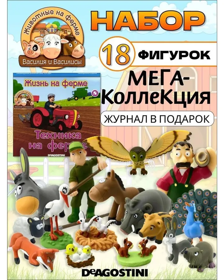 Игровой набор DeAgostini Животные на фермеПокупала этот набор из-за ягнёнка, поскольку собираем коллекцию животных на ферме. Ягнёнок очень забавный, но такой прям миниатюрный. Павлин и остальные игрушки, а также журнал в хорошем состоянии. По стоимости с промокодом и бонусами вышло дешевле, чем в маркетплейсах. Спасибо.