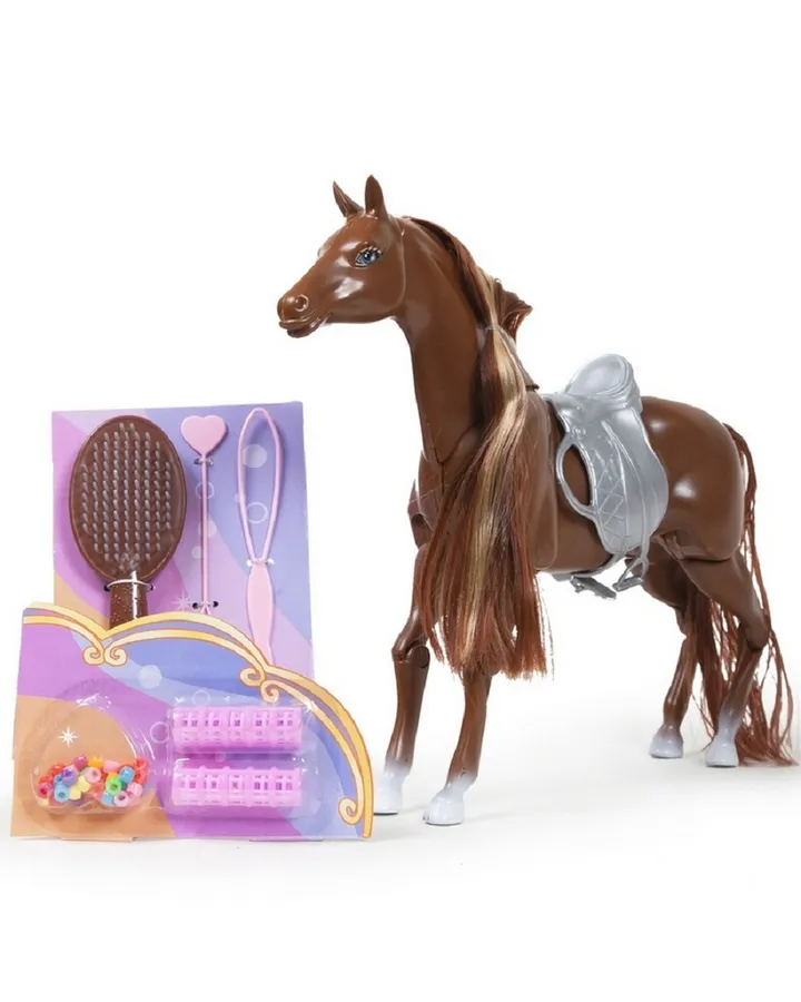 Лошадь точь в точь как на картинке, отлично двигается, привлекательная, приятная на ощупь и легкая. Грива отлично расчесывается расческой из комплекта, так же есть много разных аксессуаров, в игру добавили изюминку. Ребенок в восторге