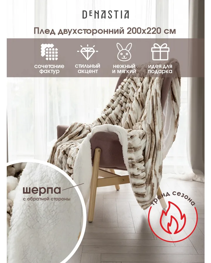 Плед DeNASTIA Уютный 200 x 220 см плюш