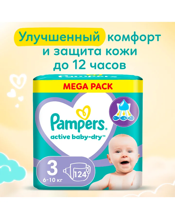 Подгузники Pampers Active Baby-Dry 3 (6-10 кг) 124 шт.