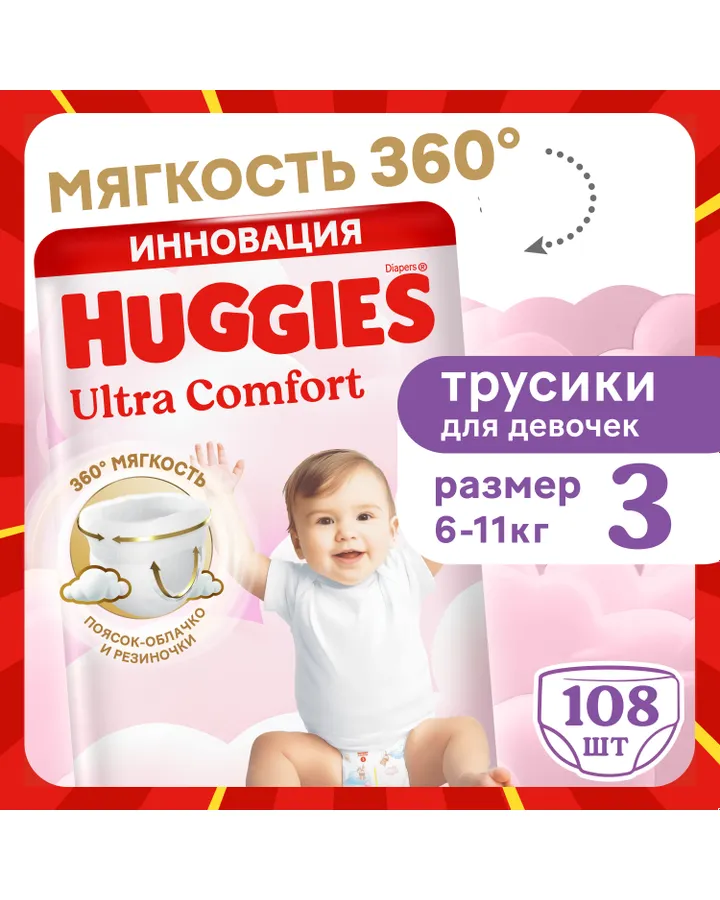Трусики Huggies Ultra Comfort для девочек 3 (6-11) 108 шт.