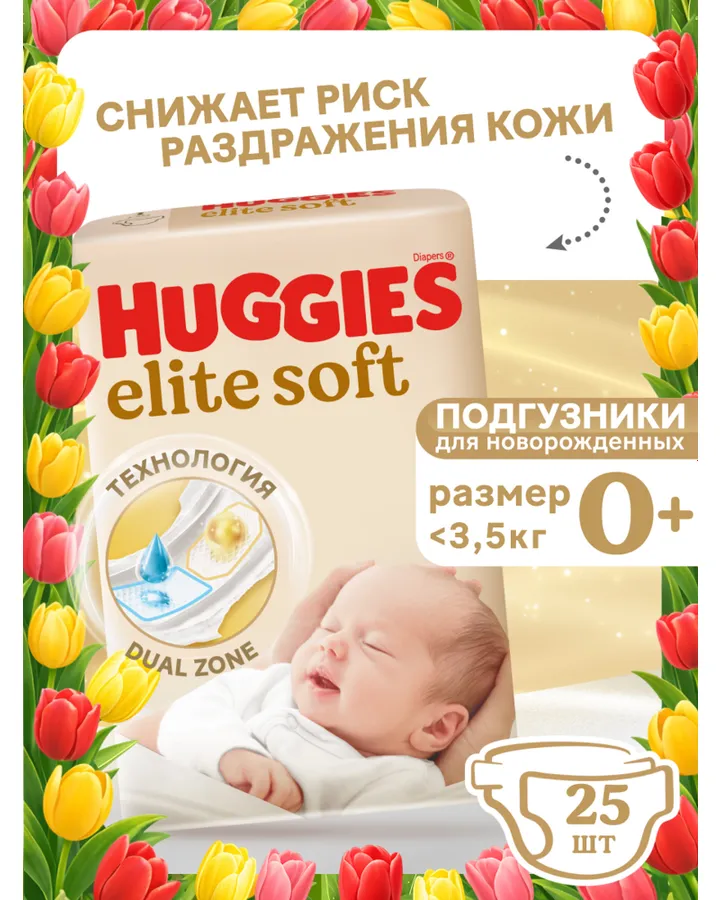 Подгузники Huggies Elite Soft для новорожденных 1 (3-5 кг) 100 шт.