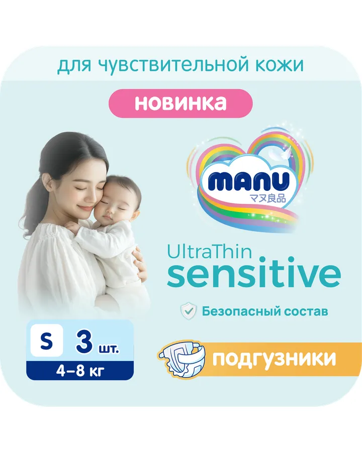 Подгузники MANU Sensitive S (4-8) 3 шт.