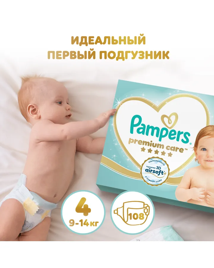 Подгузники Pampers Premium Care 4 (9-14 кг) 108 шт.
