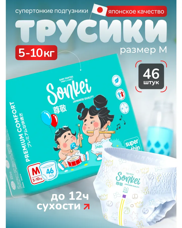Трусики Sonkei ультратонкие M (5-10 кг) 46 шт.Отличные трусики