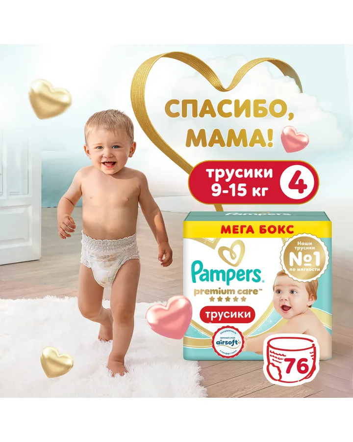 Трусики Pampers Premium Care 4 (9-15 кг) 76 шт.