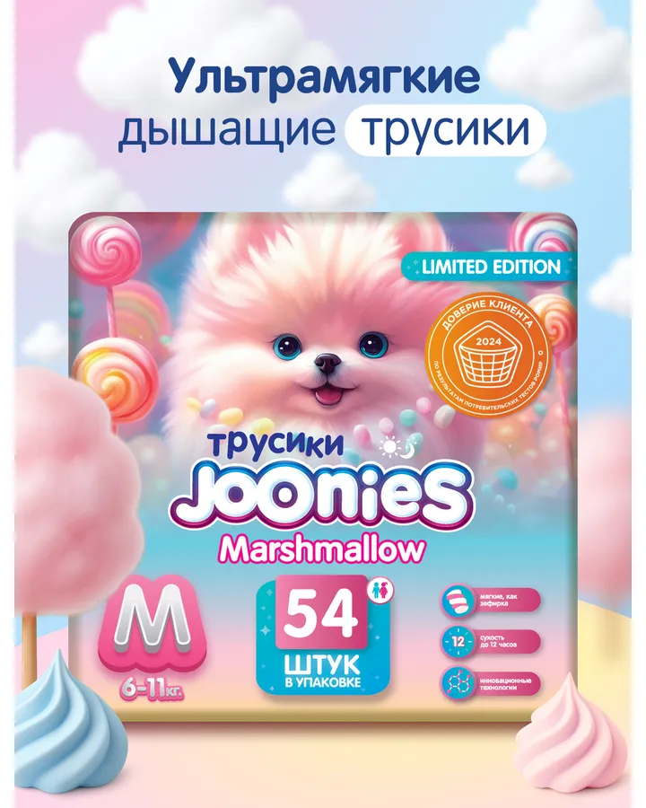 Трусики Joonies Marshmallow M (6-11 кг) 54 шт.