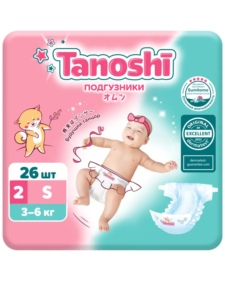 Подгузники Tanoshi S (3-6 кг) 26 шт.