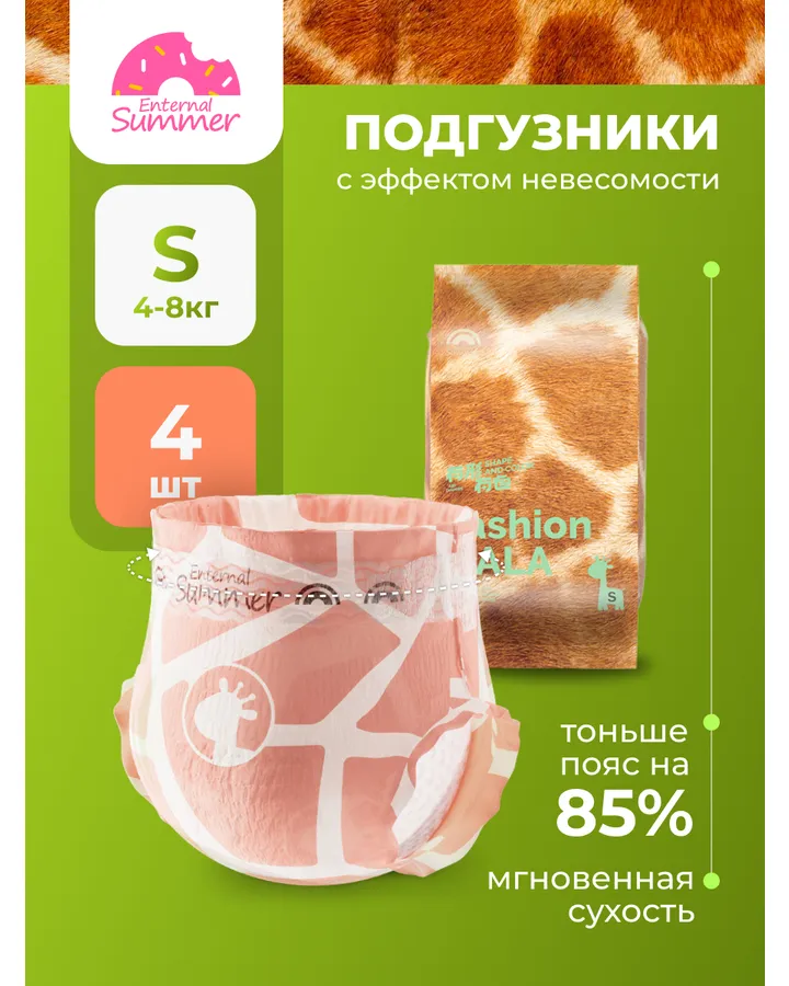 Подгузники Enternal Summer Fashion Gala S (4-8 кг) 4 шт.