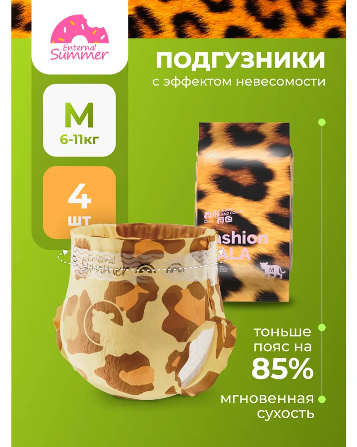 Подгузники Enternal Summer ультратонкие M (6-11) 4 шт.
