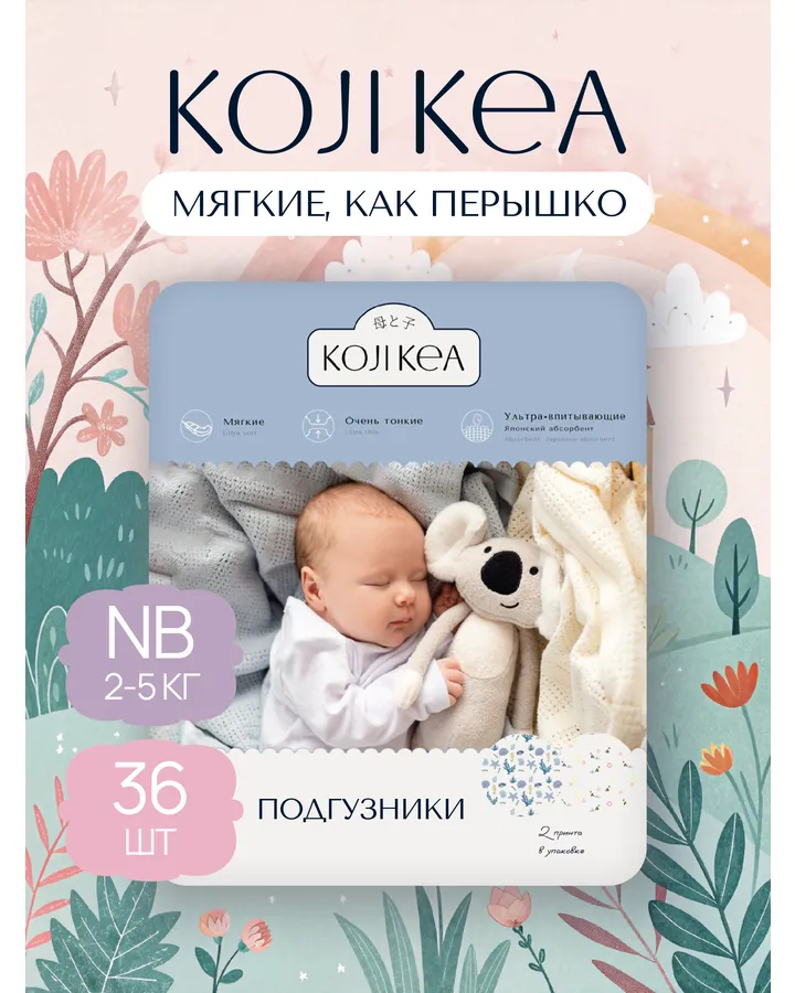 Подгузники Koji Kea S (3-6 кг) 72 шт.Наши любимые подгузники. Ни одной протечки. Никаких раздражений или опрелостей. Спокойно выдерживают всю ночь. И не становятся огромным тяжеленным комком как знаменитая фирма па»»рс