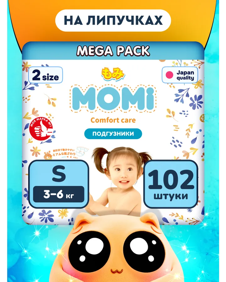 5Подгузники Momi Comfort Care NB 102 шт.Хорошие, сухо всегда. Спасибо