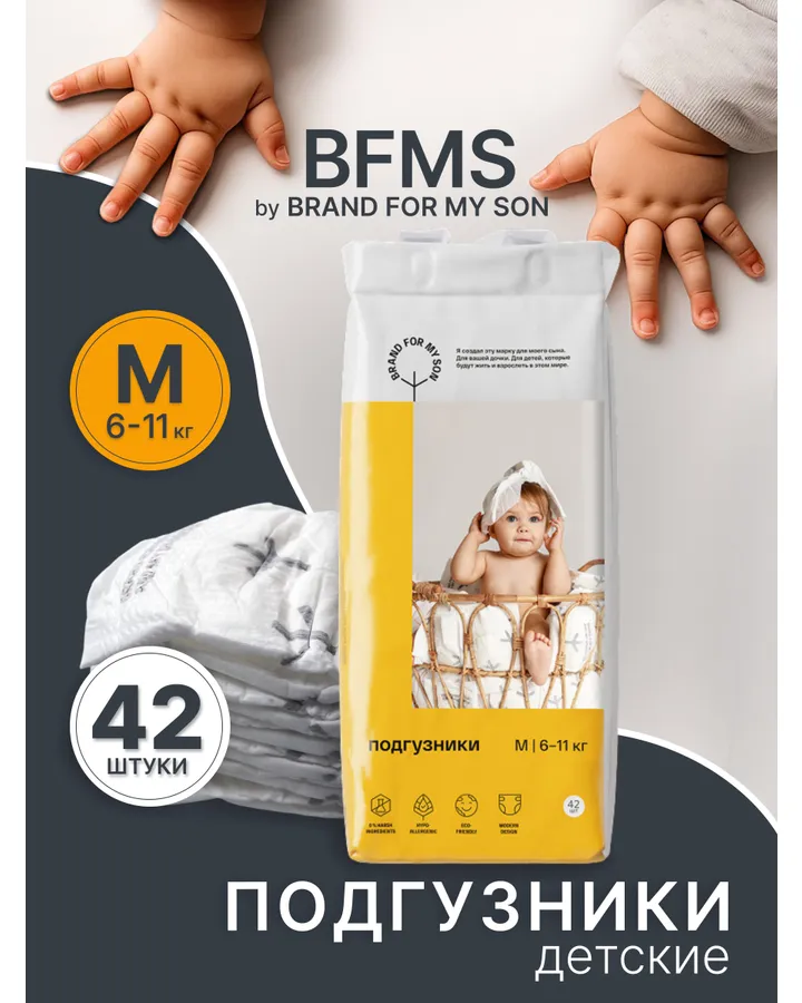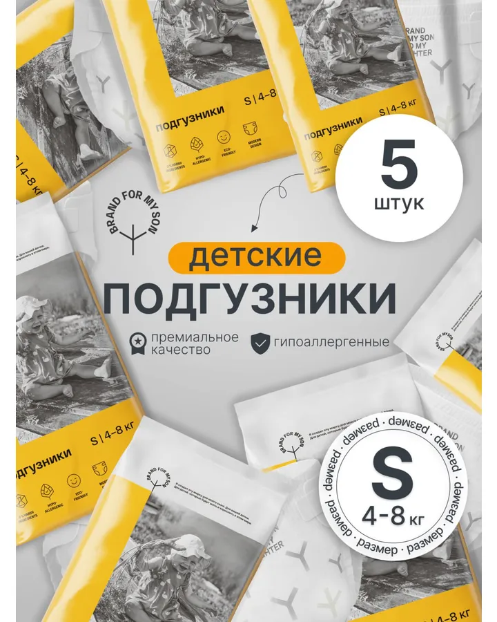 5Подгузники Brand For My Son для новорожденных S (4-8 кг) 5 шт.очень понравились, мягкие, внутри сухими остаются