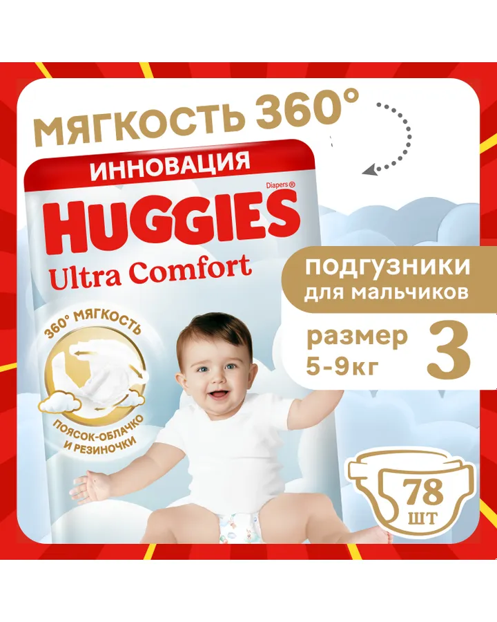 Подгузники Huggies Ultra Comfort для мальчиков 3 (5-9 кг) 78 шт.
