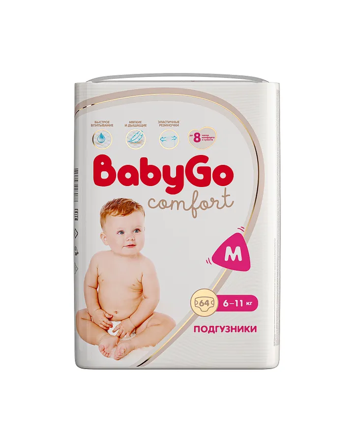 Подгузники BabyGo Comfort M (6-11 кг) 64 шт.