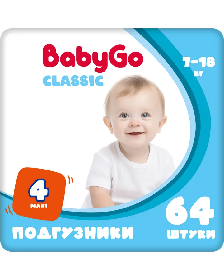 Подгузники BabyGo Classic 4 (7-18 кг) 64 шт.