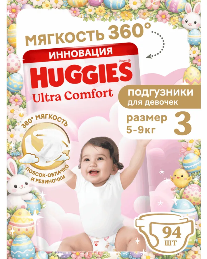 Подгузники Huggies Ultra Comfort для девочек 3 (5-9 кг) 94 шт.