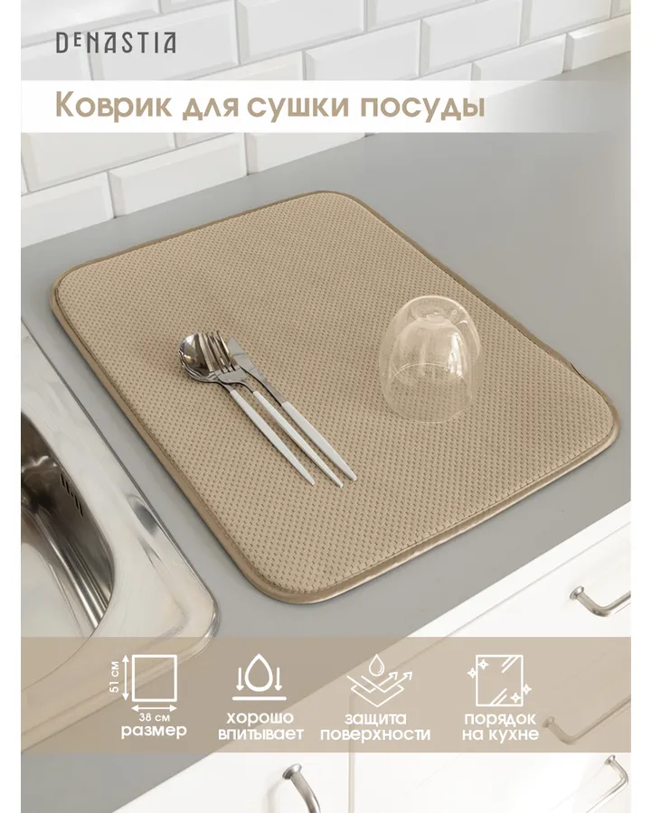 5Коврик для сушки посуды DeNASTIA в наборе с пластиковой сушилкой бежевый T000211Функциональный, удобный