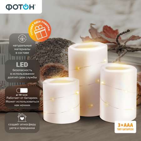 Свечи светодиодные Фотoн украшения для декора дома 3 штПокупала для свадьбы, отлично светят, очень красиво и ярко горят