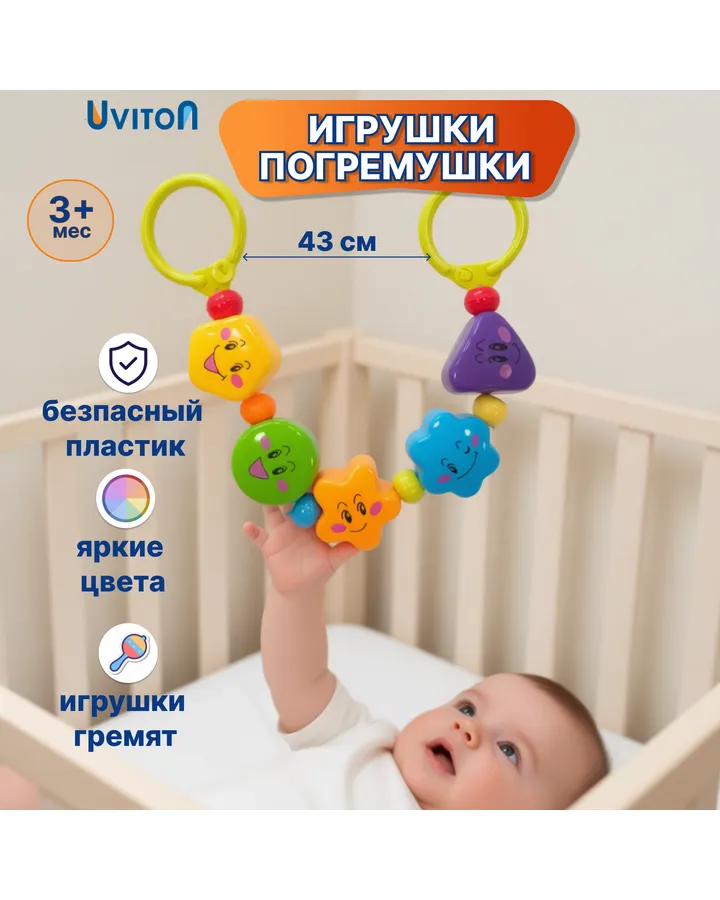 Погремушки для новорожденных выполнены из гипоаллергенных материалов и имеют удобные формы, которые легко держать в маленьких ручках. Каждая погремушка прошла строгий контроль качества, чтобы гарантировать безопасность и комфорт для вашего малыша.