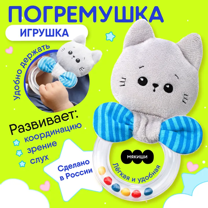 5Игрушка Мякиши погремушка Котенок КексС 2 мес. Наша любимая игрушка ❤️ Котику улыбаемся чаще, чем маме😂