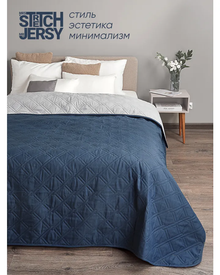 Покрывало Mrs.Stretch Mr.Jersy Синий/светло-серый 210 x 240 см