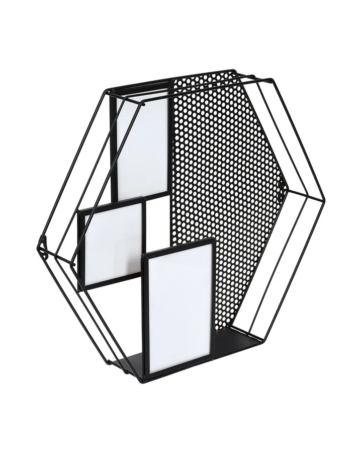 Подвесная полка Qwerty Шестигранник с рамками для фотографий черная 46х8х40 см