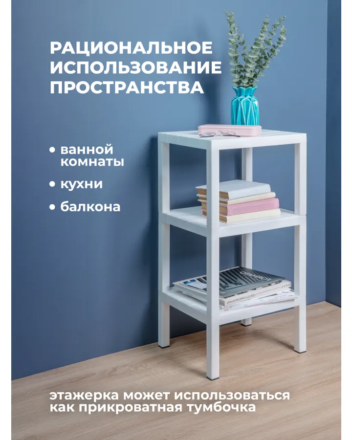 Этажерка прямоугольная Econova NATURE 38,4Х33Х72,5см белая