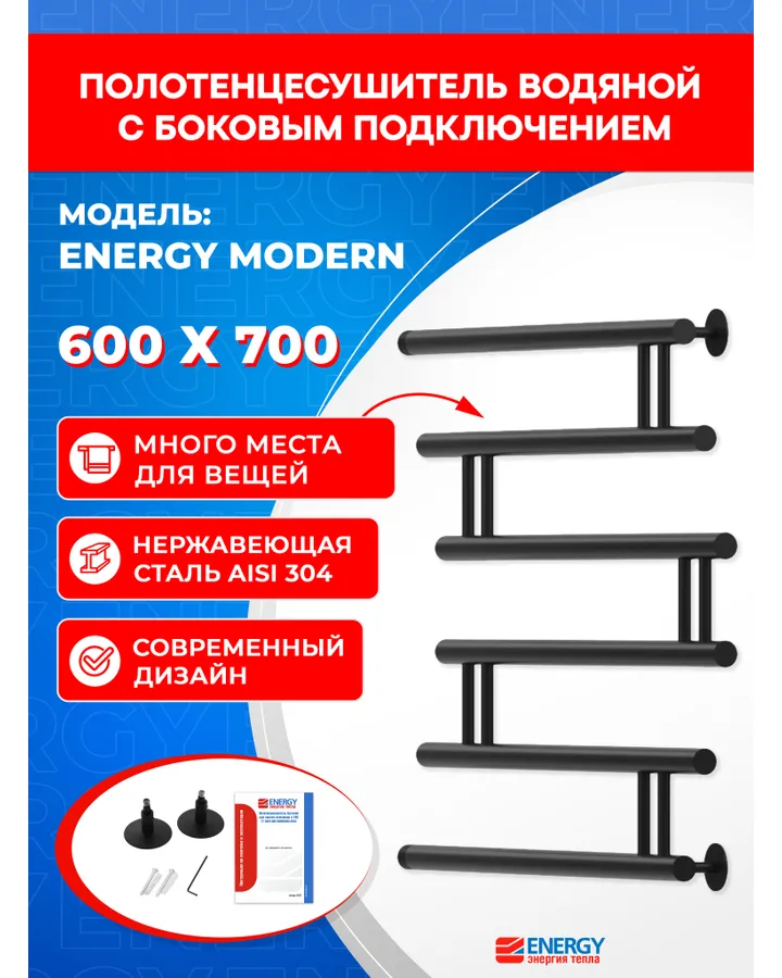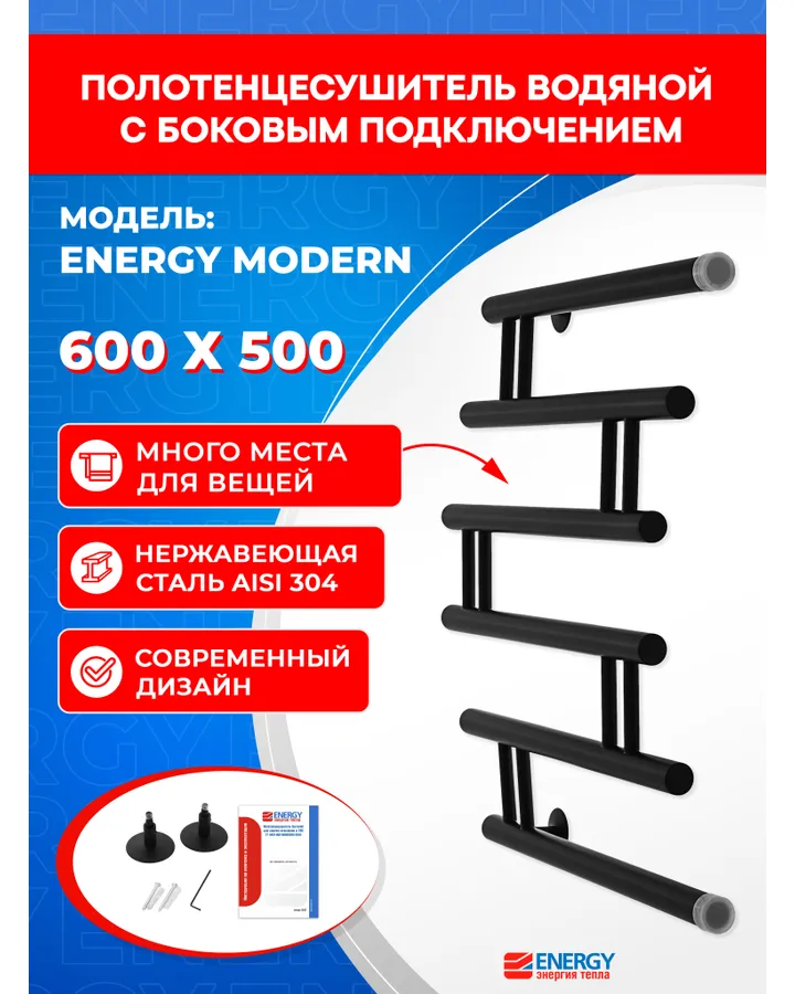 Полотенцесушитель водяной Energy Step 600x500x500 черный матовый
