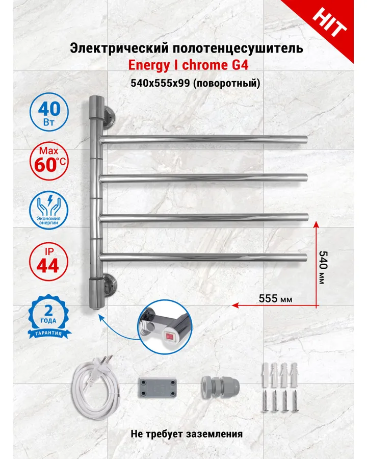 5Полотенцесушитель VLK Calor-06Мне понравился размер сушителя и его форма, а также цвет и система нагрева с переключателем. Просто есть такие полотенцесушители, которые включаются вилкой в розетку и сразу начинают греться, а у этого полотенцесушителя есть переключать, поэтому он всегда может быть подключён к розетке, а нагрев можно включать нажатием на переключатель, когда того требует необходимость. Сделан с виду качественно. Очень солидно смотрится, красиво даже, поэтому для меня данный полотенцесушитель стал ещё и неплохим, дополняющим интерьер, элементом декора. Рекомендую к покупке! Электрический полотенцесушитель если и имеет недостаток, то только один - он не сможет работать, если, вдруг, отключат электроэнергию.