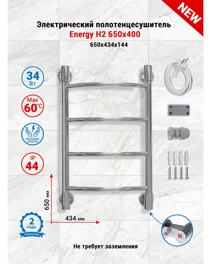 Полотенцесушитель электрический Energy ROUND 900x400 белый