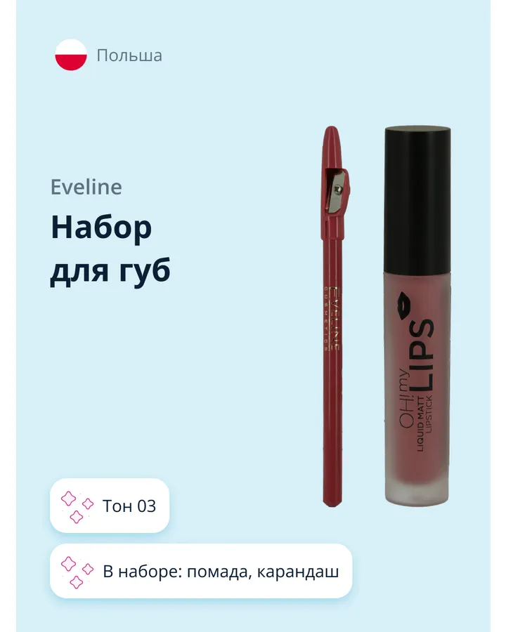 5Помада для губ EVELINE Velvet matt тон 506 матоваяТовар хороший. Но зачем клеить этикетку WALDBERIiS на помаду?!