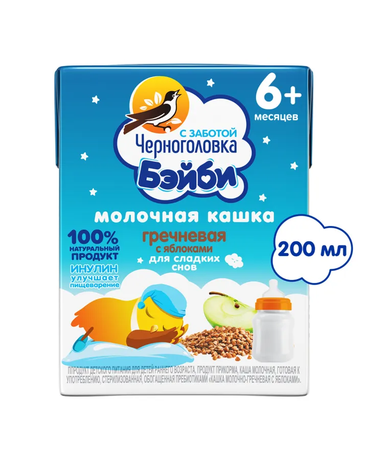 Кашка Черноголовка Бэйби молоко-гречка-яблоко 200г с 6месяцев