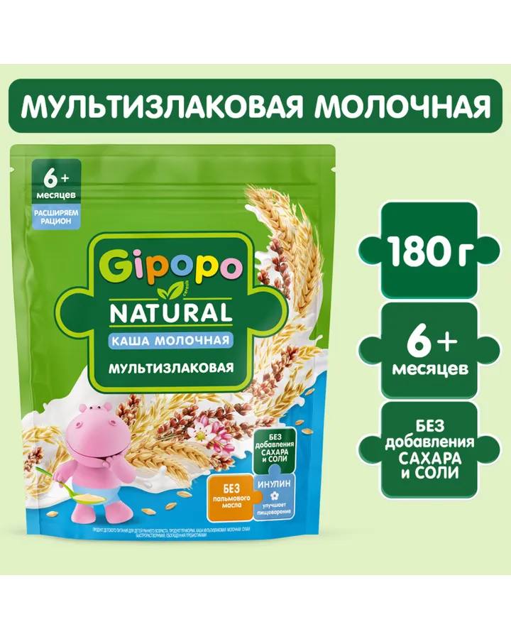 Каша Gipopo молочная мультизлаковая 180г с 6месяцев