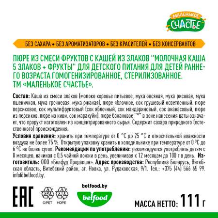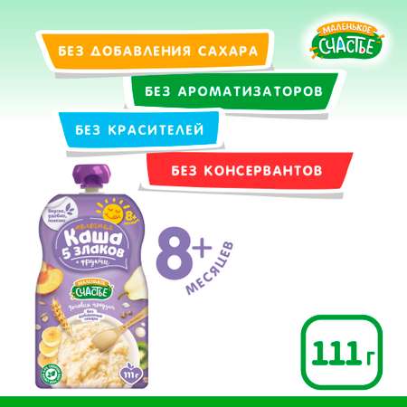 5Каша Маленькое счастье овсяная с фруктами 111г с 6месяцевОчень вкусненькая кашка. Малышу нравится. Удобно брать с собой в дорогу👍