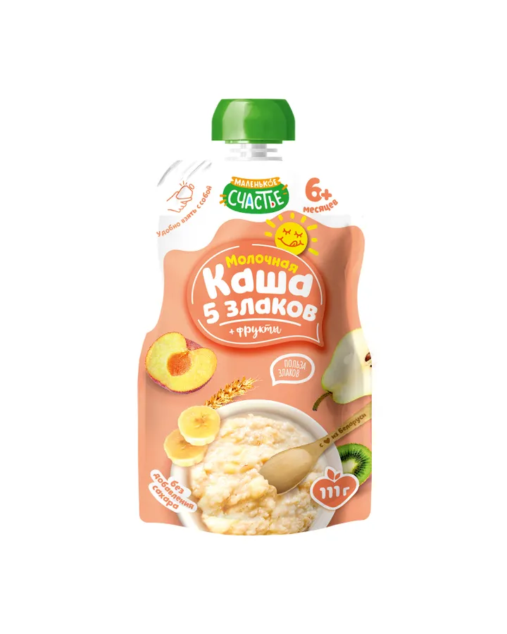 Каша Маленькое счастье 5 злаков-фрукты 111г с 6месяцев