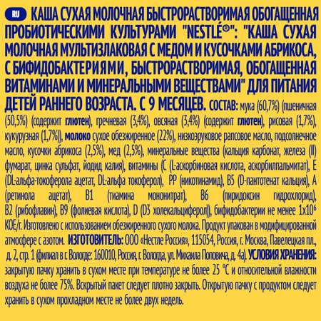 Каша молочная Nestle мультизлаковая мед-абрикос 200г с 9месяцев