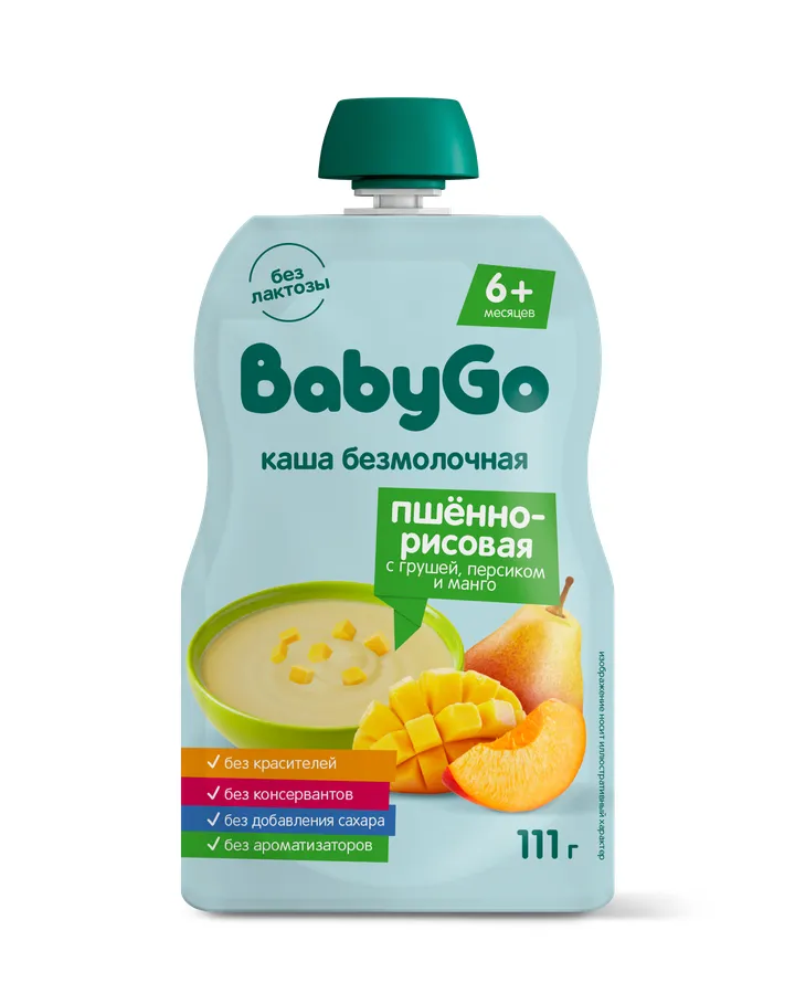 Каша безмолочная BabyGo 5 злаков с фруктами 111г с 6 месяцевВкусное, не сильно сладкое, густое пюре. Сытное. С кислинкой. Ребенок 2г сьел , а она привереда. Закажу еще. Выбор именно каш с фруктами без молока, а не фруктов со злаками не богат, рада что появилась новинка
