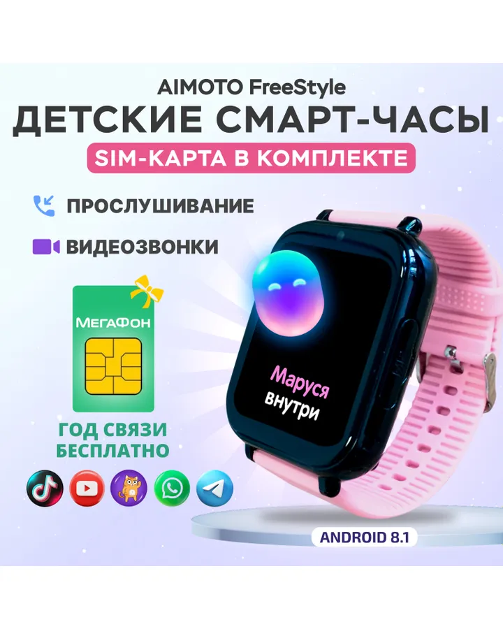 Детские смарт-часы Aimoto Trend 4g sim карта в комплекте и ассистент маруся и whatsapp telegram и face id