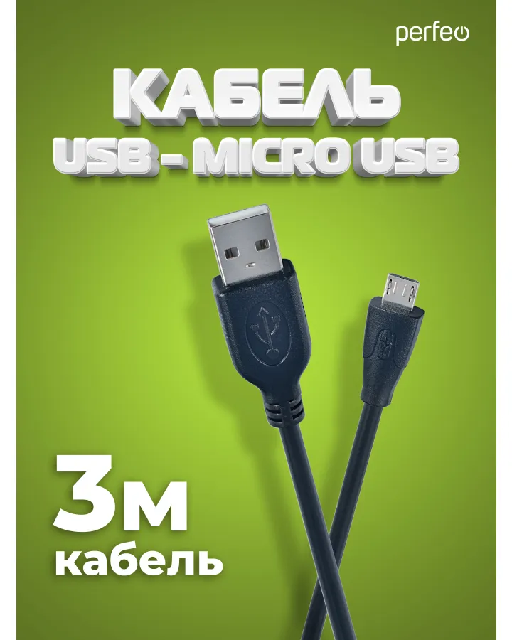 Кабель Perfeo USB2.0 A вилка - Micro USB вилка длина 3 м. U4003