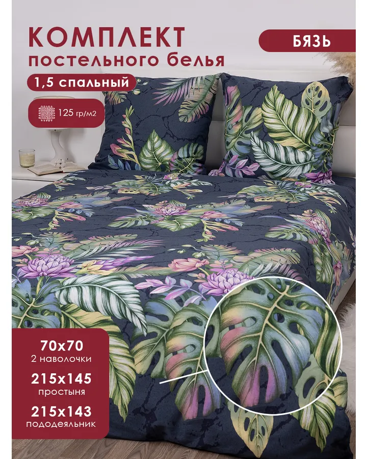 5Комплект постельного белья MILANIKA Колибри полутораспальный 4 предм.Хорошее на вид .еще не используется