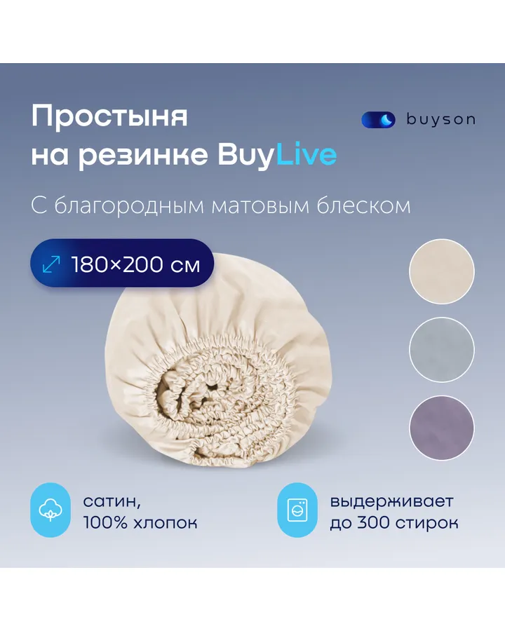 Простыня buyson BuyLive 180 x 200 см на резинке