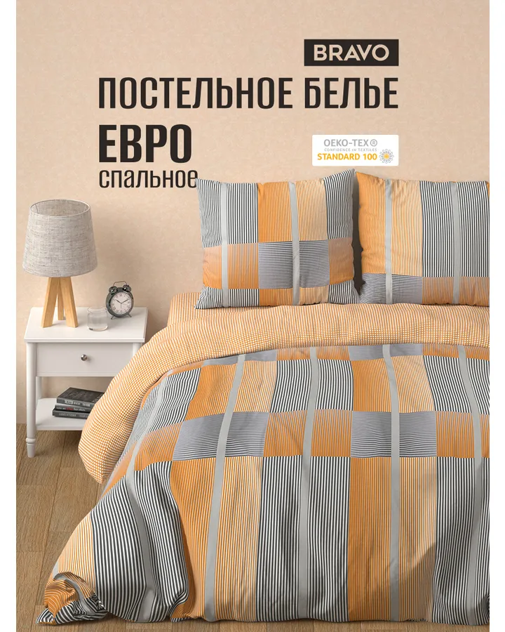 Комплект постельного белья BRAVO поплин Оранс евро 4 предм.