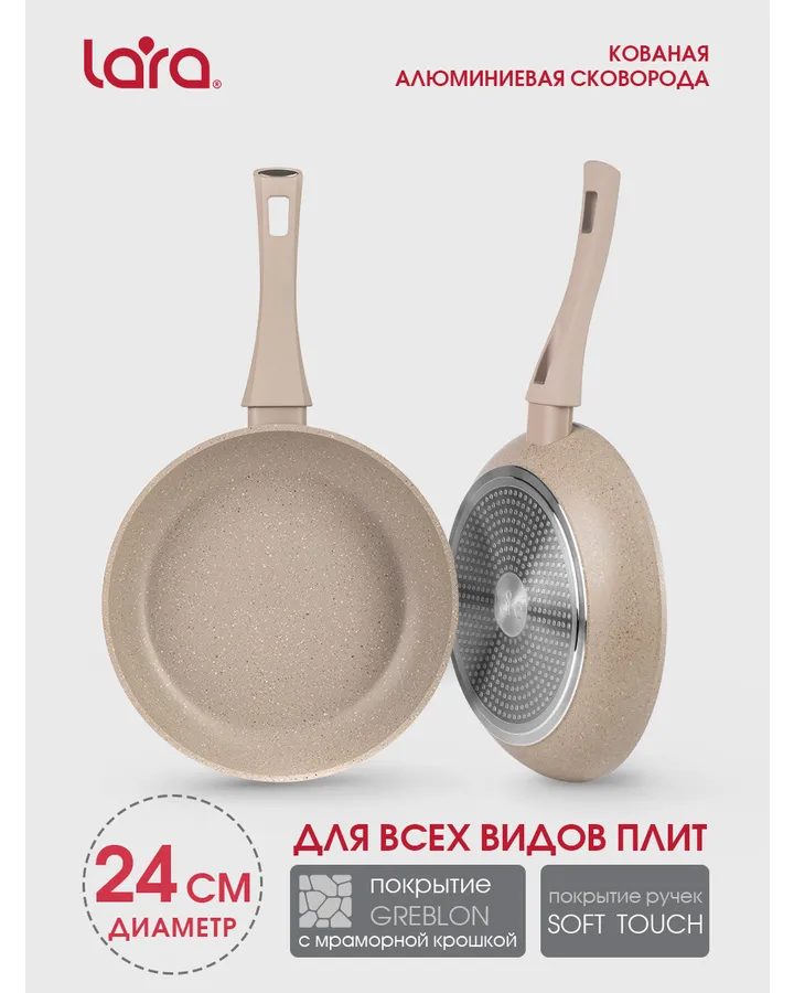 5Сковорода LARA LR01-66-20 серия ЛОФТ 20х5см ручка soft-touch индукция Индикатор нагреваОтличный товар