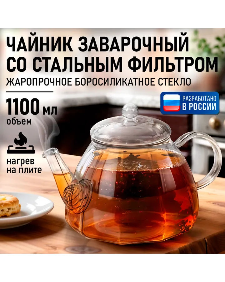 Чайник заварочный MARTA MT-GD3923AОтличный по дизайну, очень удобная ручка, попробовали его на электрической плите, всё выдержал! Супер!