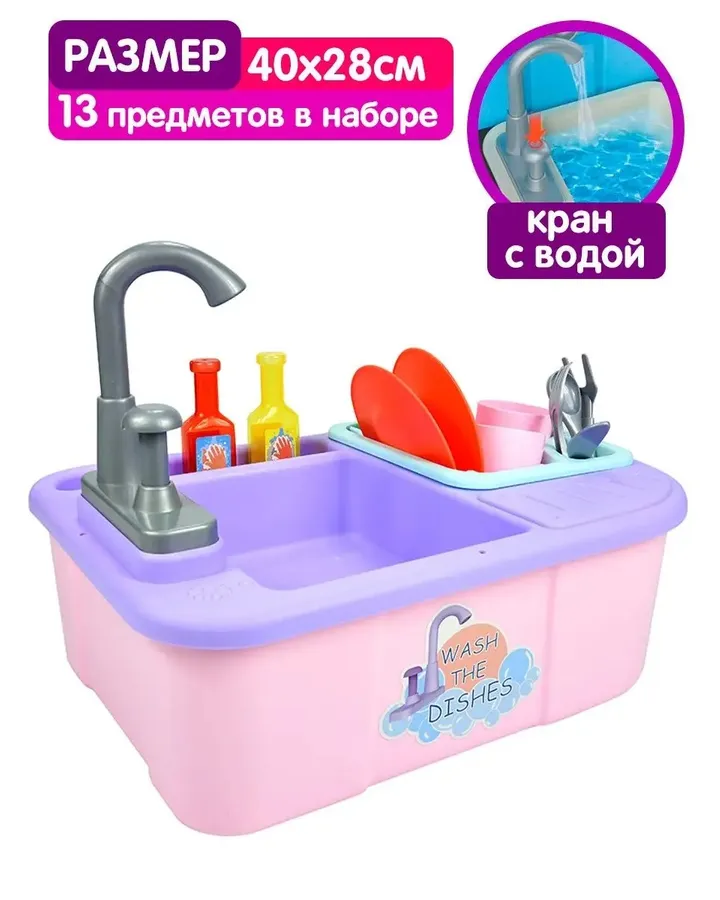 Игрушка BeInFun Моем посуду 13 предм.Набор очень удобен и практичен. Ребенок с удовольствием играет с ним каждый день. Все детали изготовлены качественно и безопасно для малышей. Пластик прочный и крепко стоит. Аксессуары и дизайн просто супер, реалистично и интересно. Вода не брызжет, заглушка отлично останавливает воду, посуда выглядит здорово и аккуратно